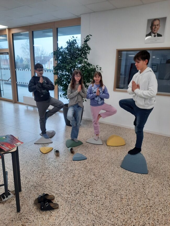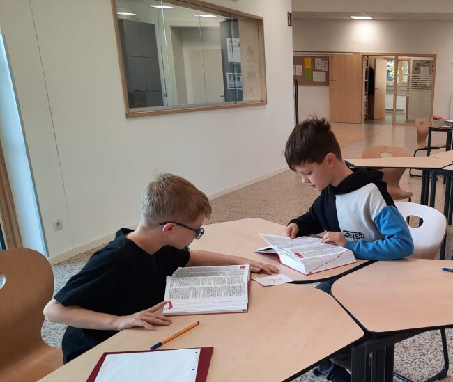 Unsere Schüler*innen finden in unterschiedlichen Lernphasen immer wieder Zeit sich individuell zu vertiefen. Dazu steht ihnen ein umfangreiches Übungsangebot zur Verfügung. Unser Schulhaus, vor allem die Aula, bietet ausreichend Platz, um auch klassenübergreifend zu arbeiten.