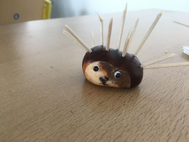 Die 2. Klasse beschäftigte sich mit dem Thema: Basteleien mit Naturmaterialien. Nach dem Sammeln entstanden im Werkunterricht verschiedene Tiere.