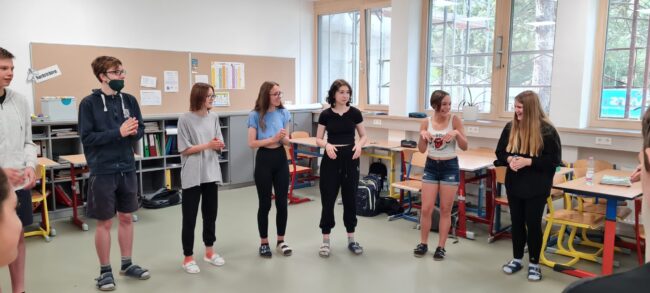 Am 2.6. fand für die Schüler und Schülerinnen der 3. Klasse E-AHS ein Englisch-Workshop statt, der von einer Native-Speakerin des English Theaters abgehalten wurde. Zuerst wurden verschiedene Sprach- und Aktionsspiele durchgeführt, danach ganze Szenen aus „Peter Pan“ eingeübt und präsentiert. Die Kinder hatten viel Spaß und waren eifrig bei der Sache.
