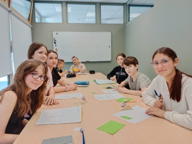 Am 24.04. stand im Mathematikunterricht der 2. und 3. Klassen das Thema Parallelogramm im Mittelpunkt, umgesetzt durch Peer-Learning. Dabei arbeiteten die Schüler*innen klassenübergreifend zusammen und lernten mit- und voneinander. Die Kinder erklärten sich gegenseitig die Eigenschaften des Parallelogramms, zeichneten Figuren und verglichen ihre Ergebnisse. Durch den Austausch konnten sie ihr Verständnis vertiefen und voneinander profitieren.