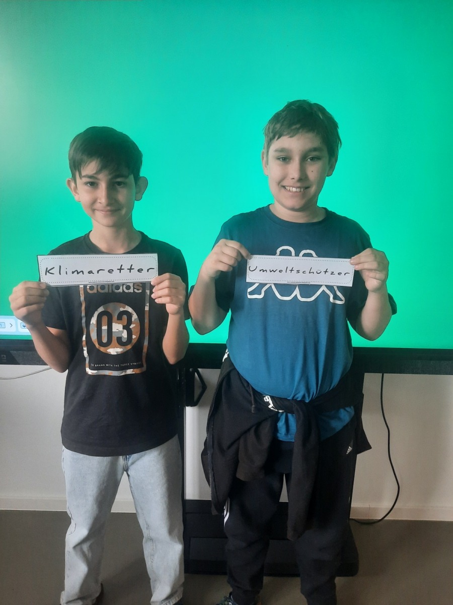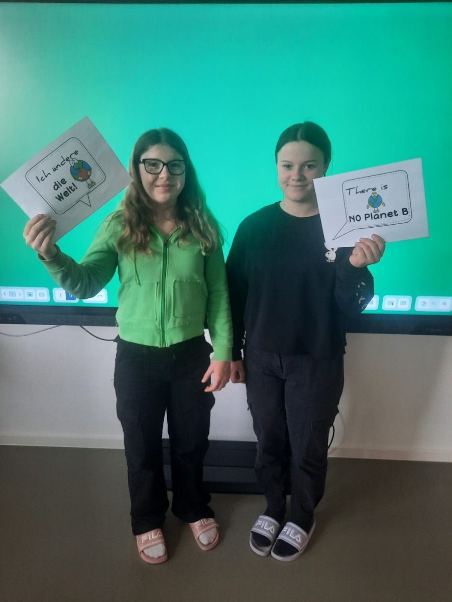 In der 2b wurden faszinierende Statementfotos gemacht, die die Bedeutung von Nachhaltigkeit einfangen und auch wichtige Fragen und Begrifflichkeiten klärten. Jede*r von den Schüler*innen hat sich aktiv beteiligt und eigene Lösungsvorschläge für nachhaltiges Handeln in verschiedenen Bereichen erarbeitet.