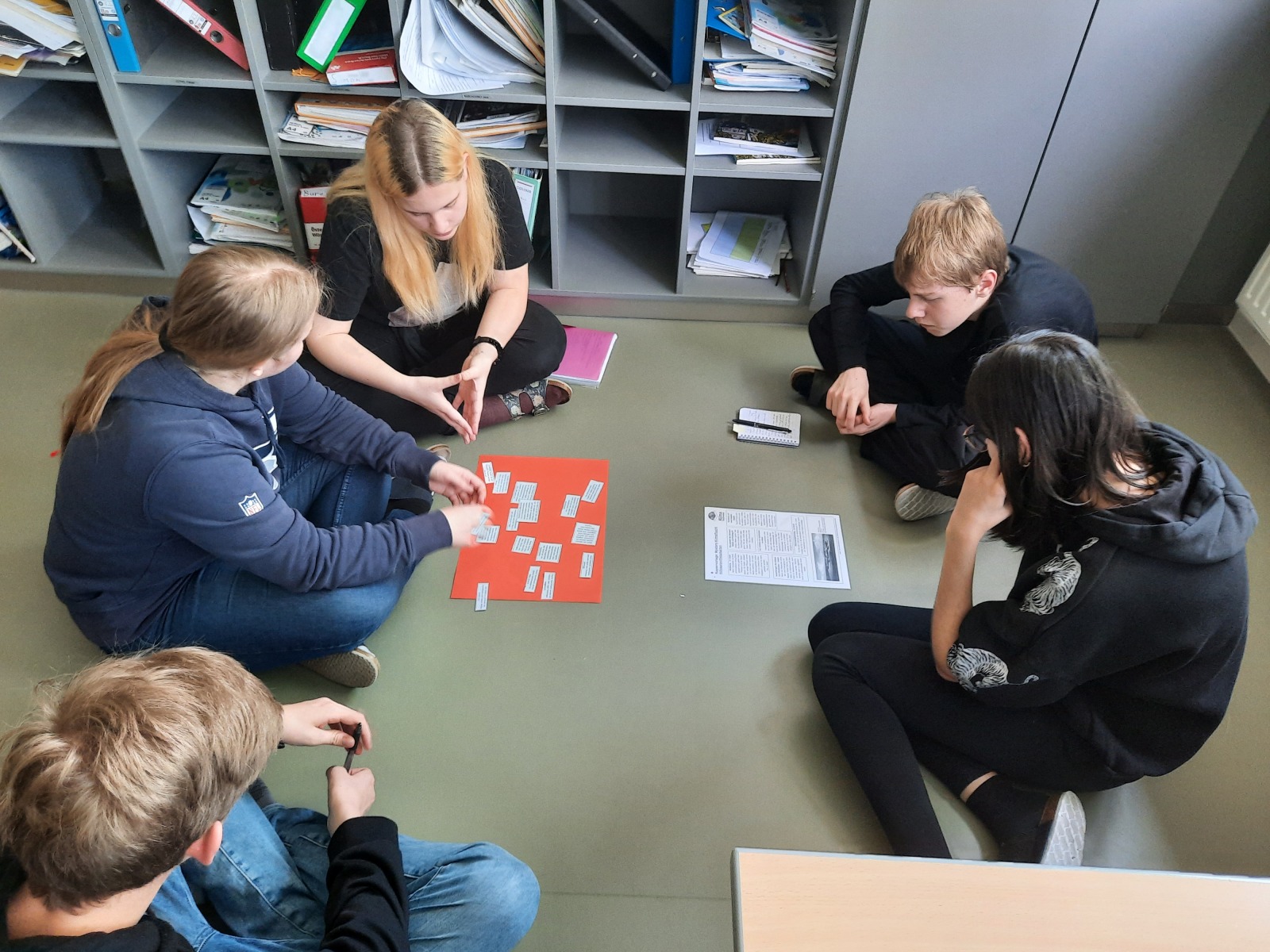 In Geschichte reisten die Schüler*innen in der Zeit zurück und recherchierten zum Thema „Mülltrennung in der industriellen Revolution“. In Kleingruppen informierten sich die Schüler*innen über die Geburtsstätte von Müllbergen, Recycling während der industriellen Revolution und reflektierten ihre eigene „Wegwerfmentalität“.