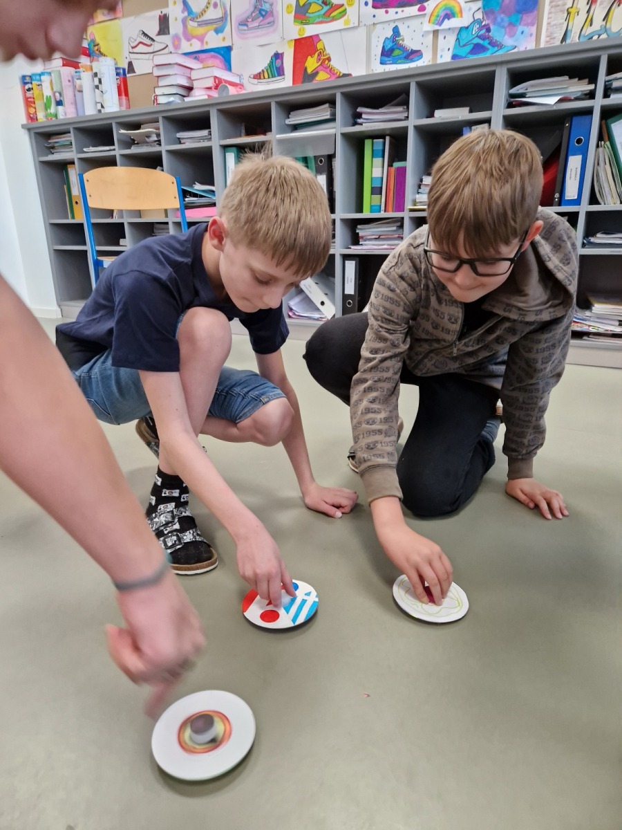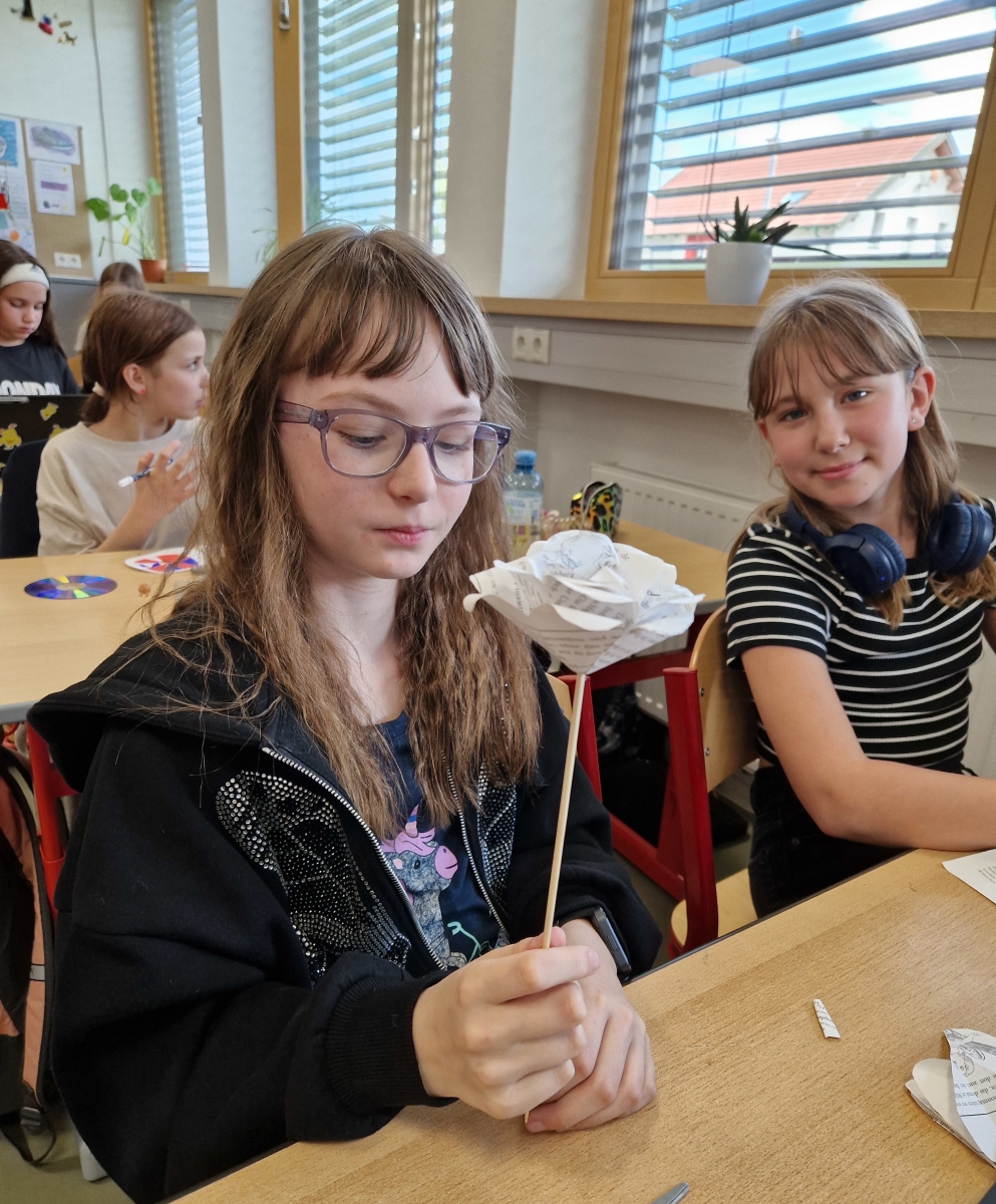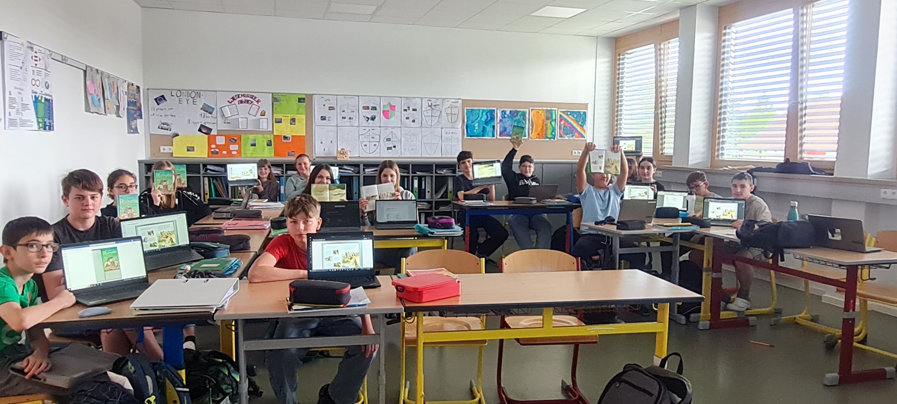 Nach einem Workshop des G.V.U. über das Vermeiden von Abfall in den 1.Klassen verwendete die 1a alte CDs und kaputte Bücher zum Basteln – so schont man Ressourcen und spart außerdem Geld. Die 1b stellten ihr erworbenes Wissen in Form eines Kahoots (Onlinequiz) unter Beweis.