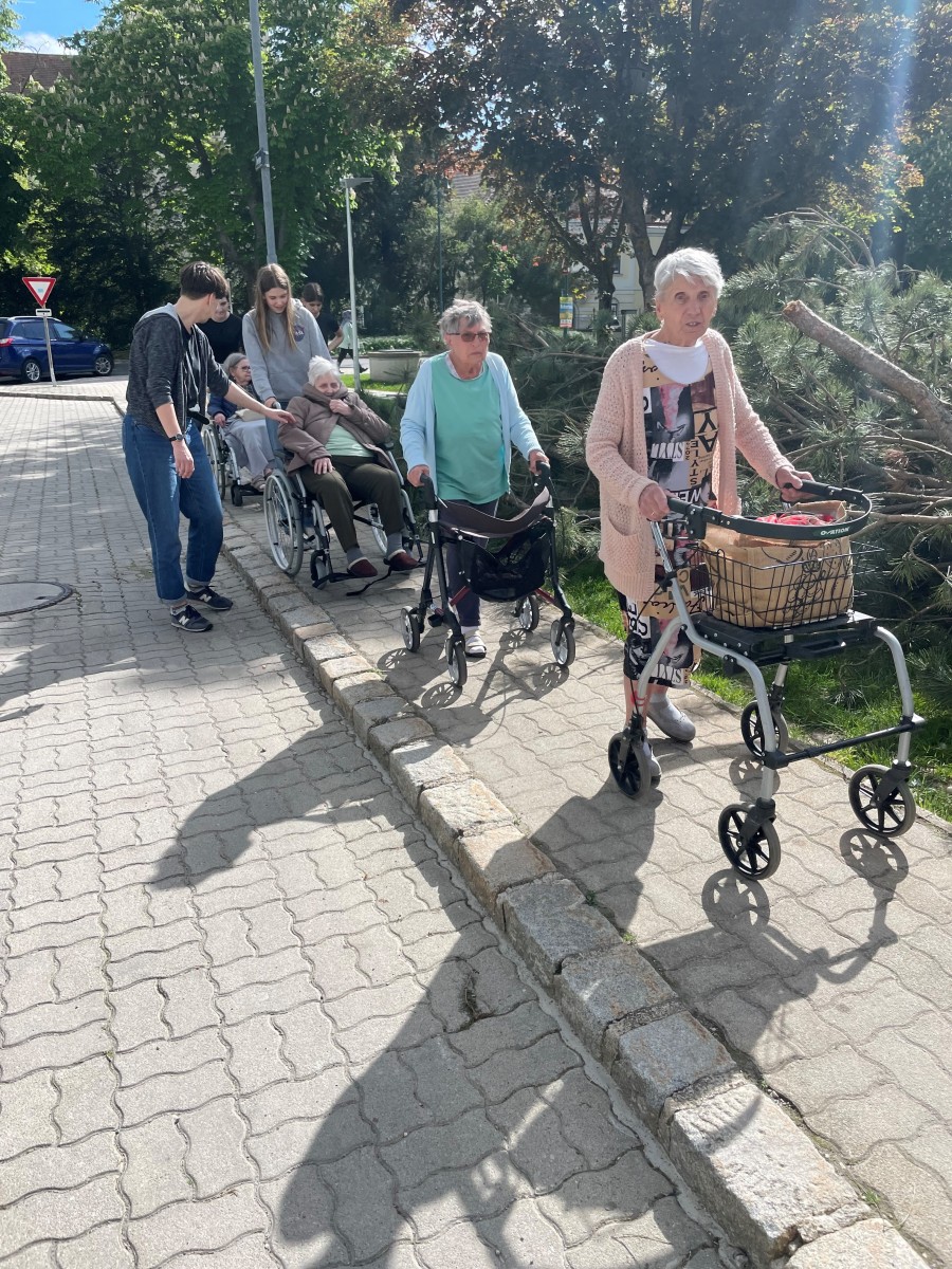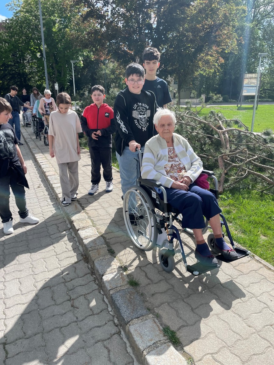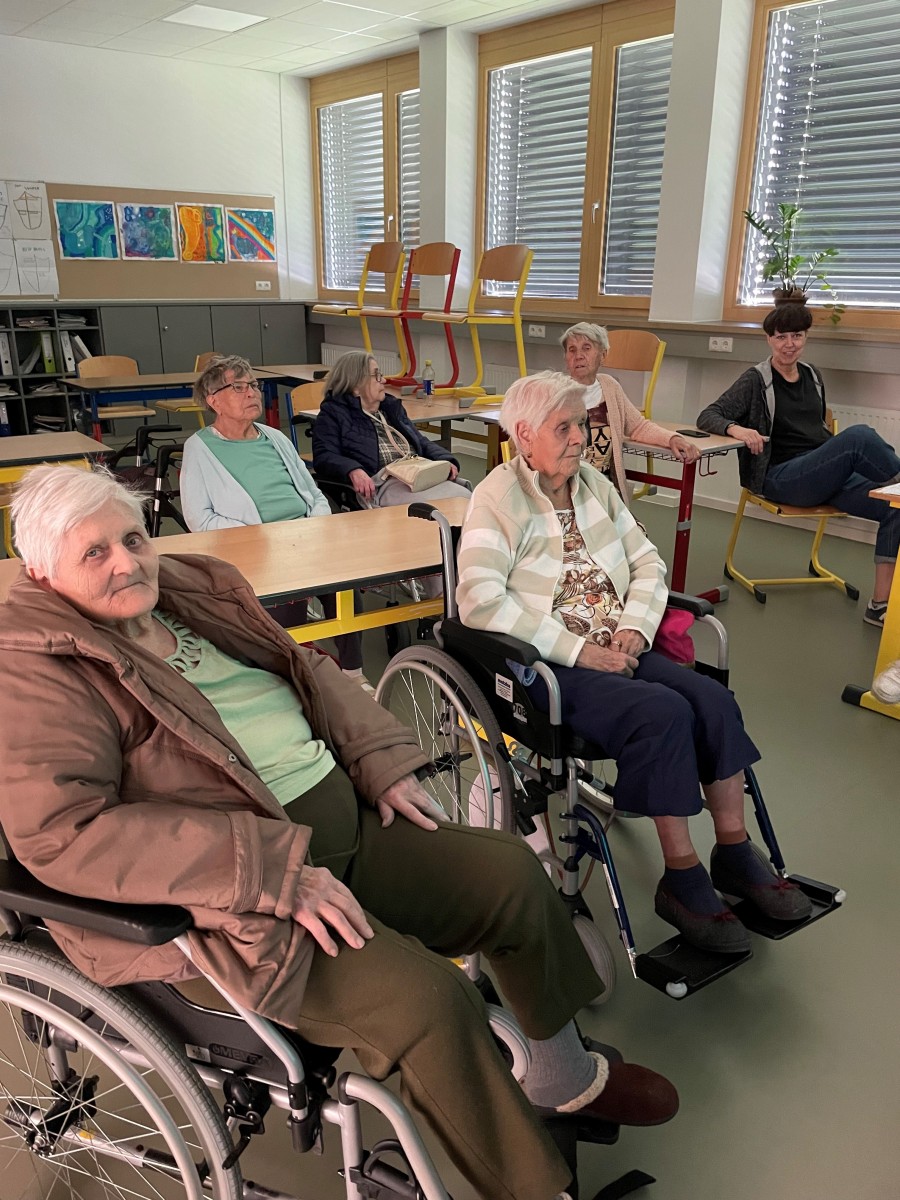 Am 2.5.2024 besuchten Bewohner*innen des Hauses Sankt Michael die generalsanierte Schule. Sie wurden von den Schüler*innen aus dem Interessens- und Begabungsmodul ,,JA, jung und alt!“ durch das neue Gebäude geführt. Große Begeisterung lösten die digitalen Tafeln und der große Turnsaal aus. ,,Wir kommen gerne wieder und schauen uns einen Film auf der großen Leinwand an!“ war eine Wortmeldung danach.