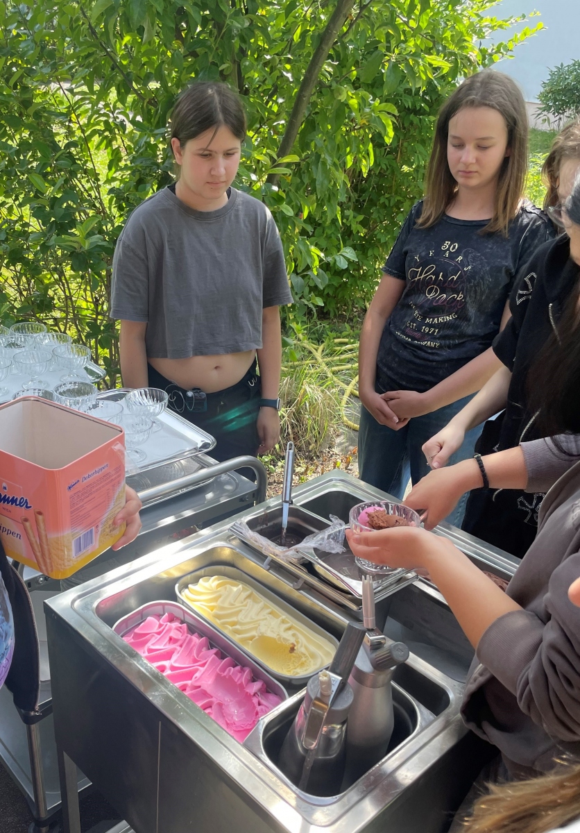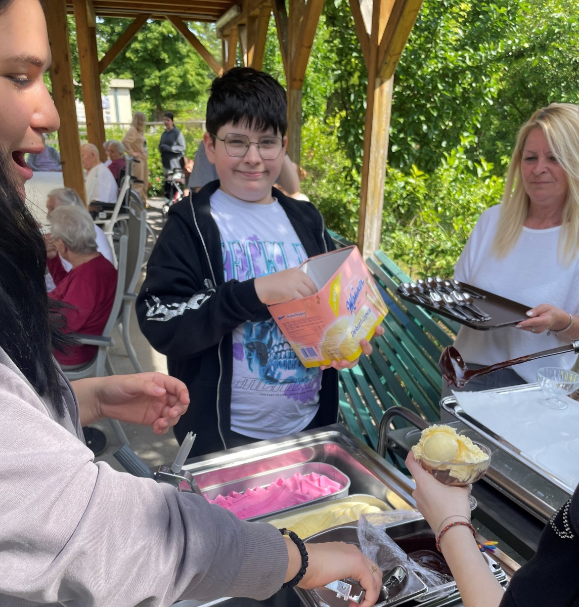 Am 23. Mai 2024 wurde als Höhepunkt des aktuellen Schuljahres eine Eisparty im Freien veranstaltet, an der die Bewohner*innen des Hauses St. Michael und die Schüler*innen vom IBM „JA, jung und alt“