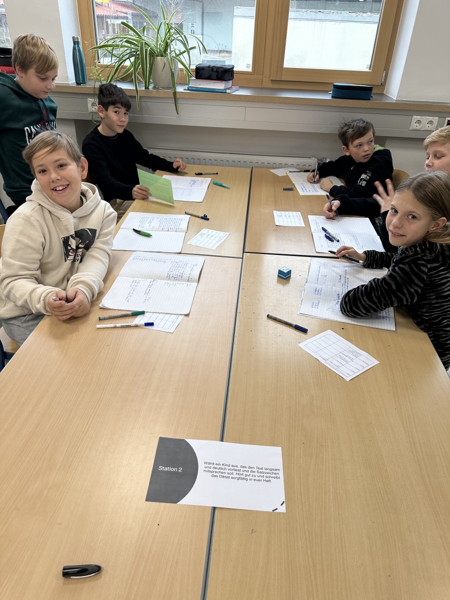 Im Deutschunterricht der 1b haben wir einen abwechslungsreichen Stationenbetrieb gemacht, bei dem die Schüler*innen das Handwerk einer Bildgeschichte erlernten. Sie übten, die direkte Rede einzubauen, abwechslungsreiche Satzanfänge zu verwenden und wichtige Inhalte in eine spannende Geschichte zu verwandeln. Das offene Lernen ermöglichte es allen, in ihrem eigenen Tempo zu arbeiten und sich gegenseitig zu inspirieren. So wurde das Schreiben einer Geschichte zu einer tollen, kreativen Herausforderung!