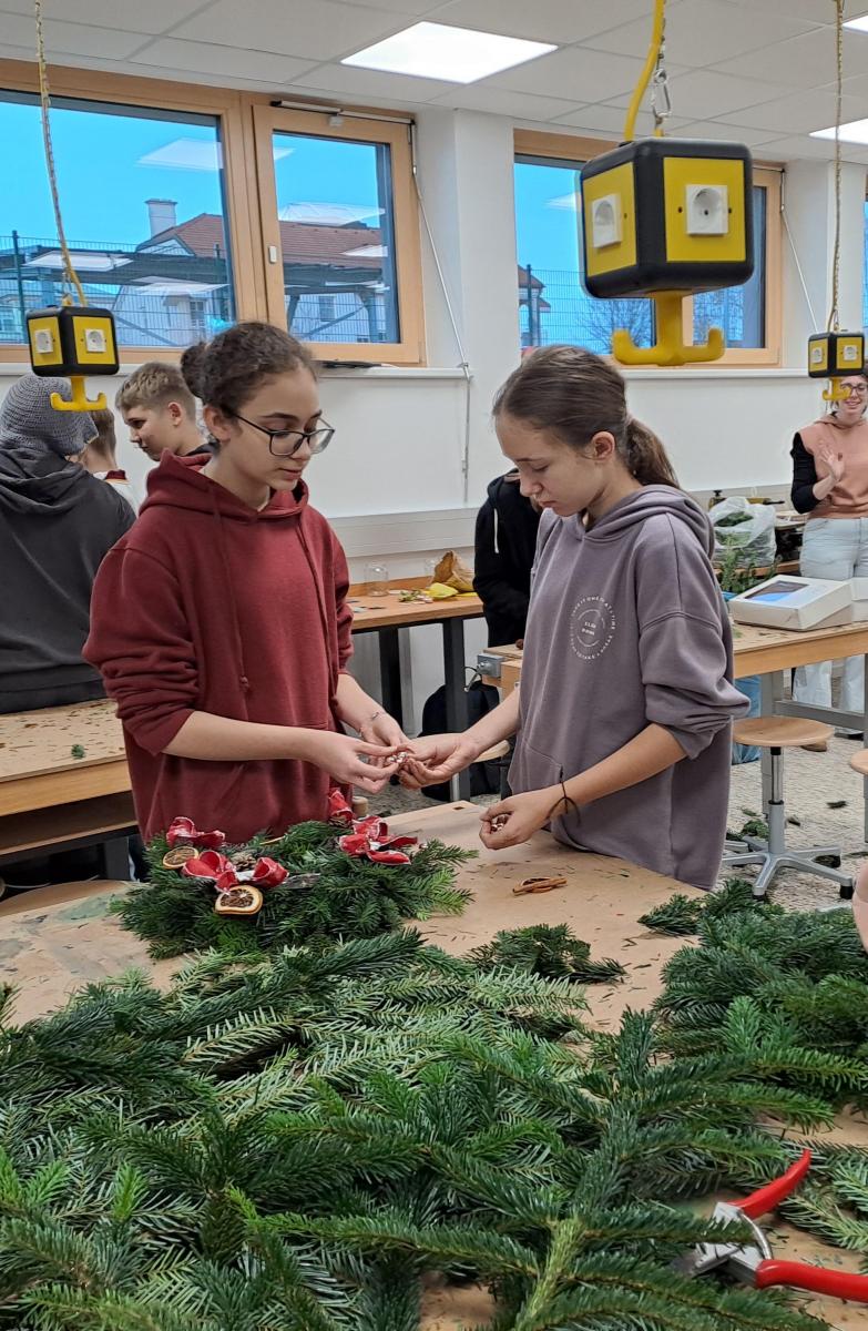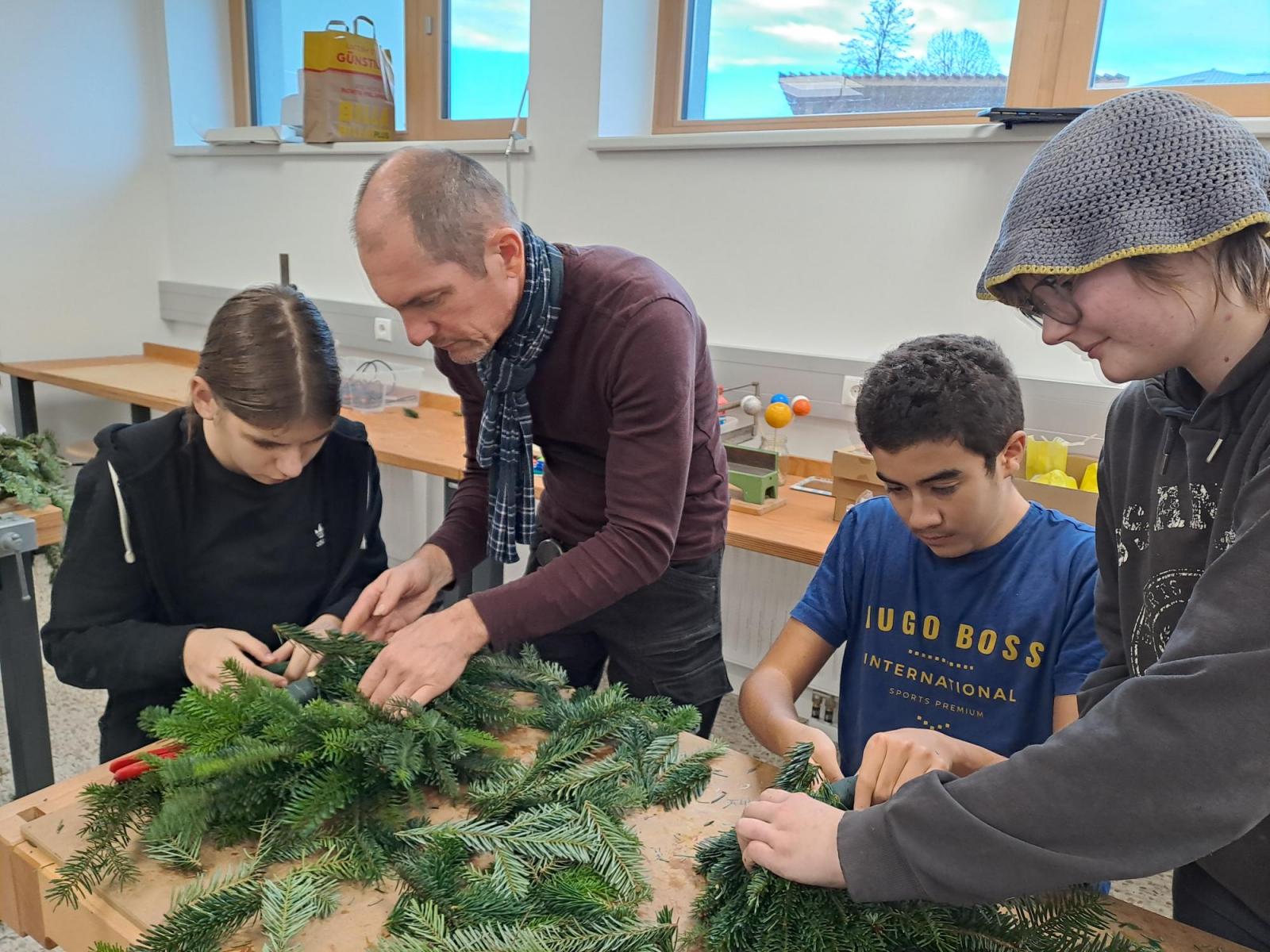 Unter der Anleitung von Meisterflorist & Floraldesigner Michael J. Zihr haben einige Schüler*innen der 4. Klassen in einem BO-Workshop Adventkränze gebunden. So sind nicht nur kleine „floristische Kunstwerke“ entstanden, die unsere Klassenräume vorweihnachtlich schmücken sollen, sondern die Schüler*innen konnten auch einen Einblick in das Berufsbild eines Floristen gewinnen.