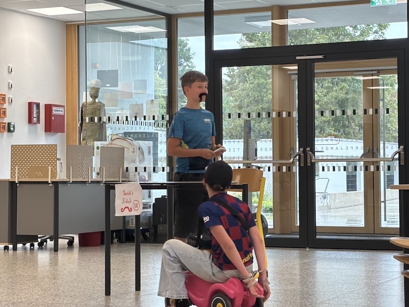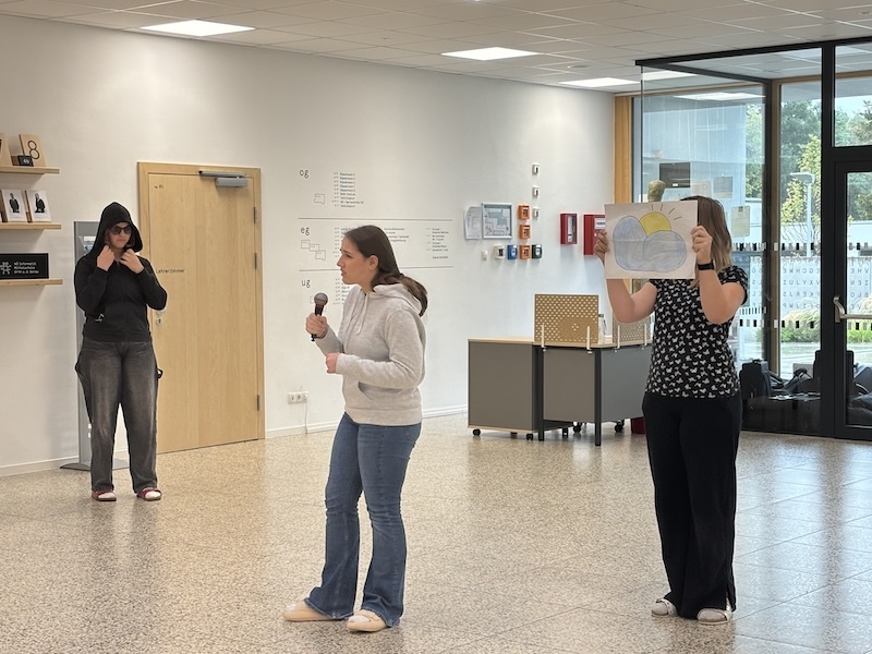 Ein Höhepunkt war zweifellos die große Abschlussaufführung: Mit schauspielerischem Talent und jeder Menge Humor präsentierten die Schülerinnen und Schüler kleine Szenen – vom glamourösen Treffen mit Harald Glööckler in einer Casting Show, über den charmanten Wetterbericht mit Zahide, bis hin zu einem Schulalltag mit einer übernatürlichen Anzahl an Rubik’s Cubes.