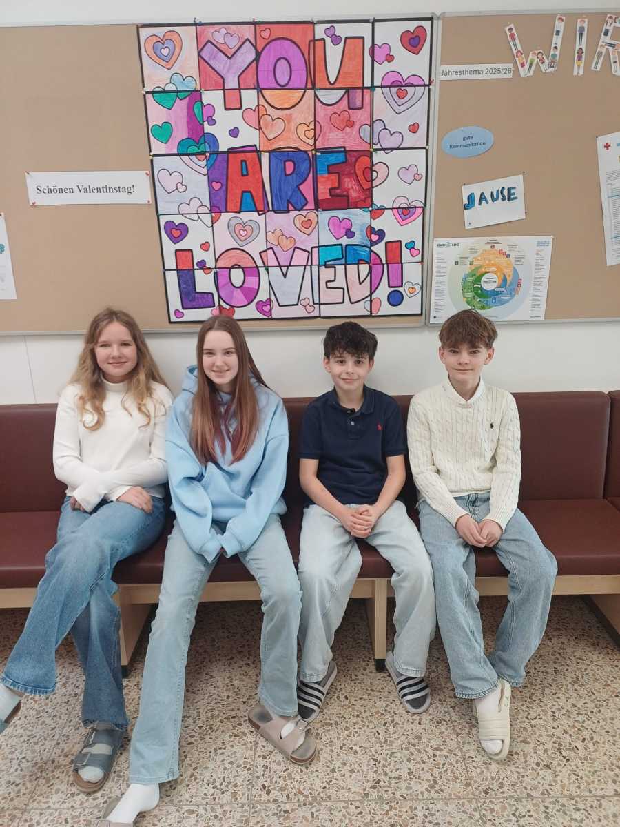 Die 2a wünscht allen Schüler*innen, Lehrer*innen und allen, die diesen Beitrag lesen, einen schönen Valentinstag! 14. Februar 2026KommentarnavigationZurückVorheriger Beitrag:SemesterferienNächstesNächster Beitrag:Blind Dates mit Büchern – Eine besondere Valentinstagsaktion im DeutschunterrichtÄhnliche BeiträgeIm Einsatz für Kröte, Molch & Co11. März 2026Walken in der Au – „Tut gut!“11. März 2026Wir suchen Verstärkung!10. März 2026Ankündigung CrossOver-Konzert10. März 2026Lie Detectors in den 3. Klassen – Fake News entlarven wie Profis!5. März 2026Trampolinspaß im Cyber Jump für die 4. Klassen2. März 2026