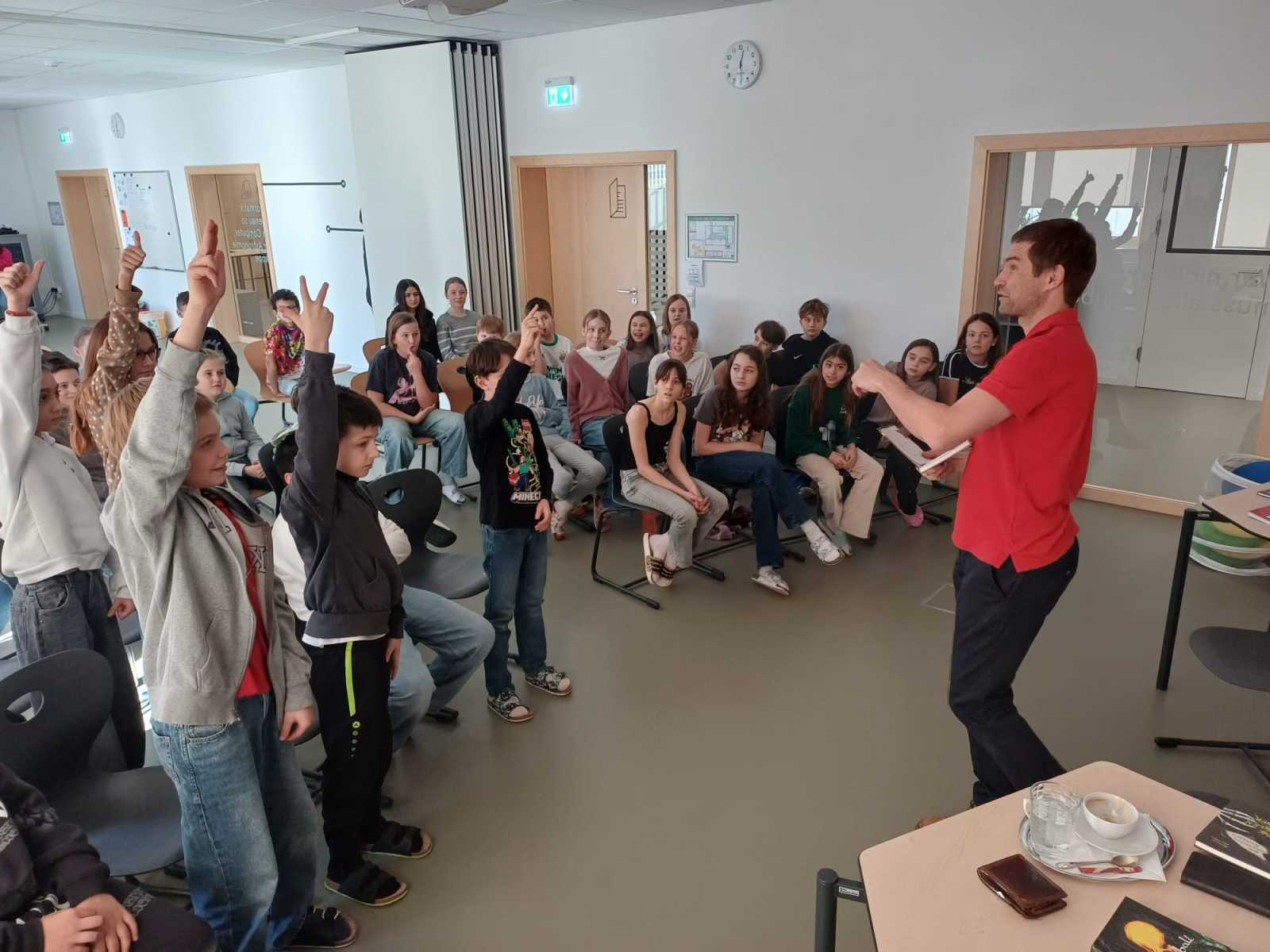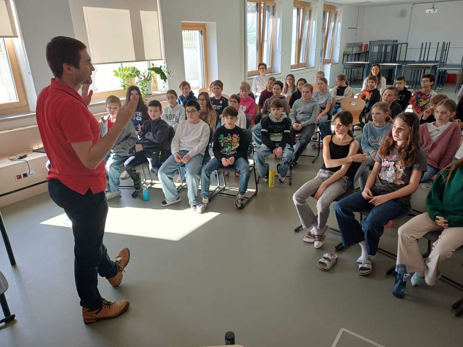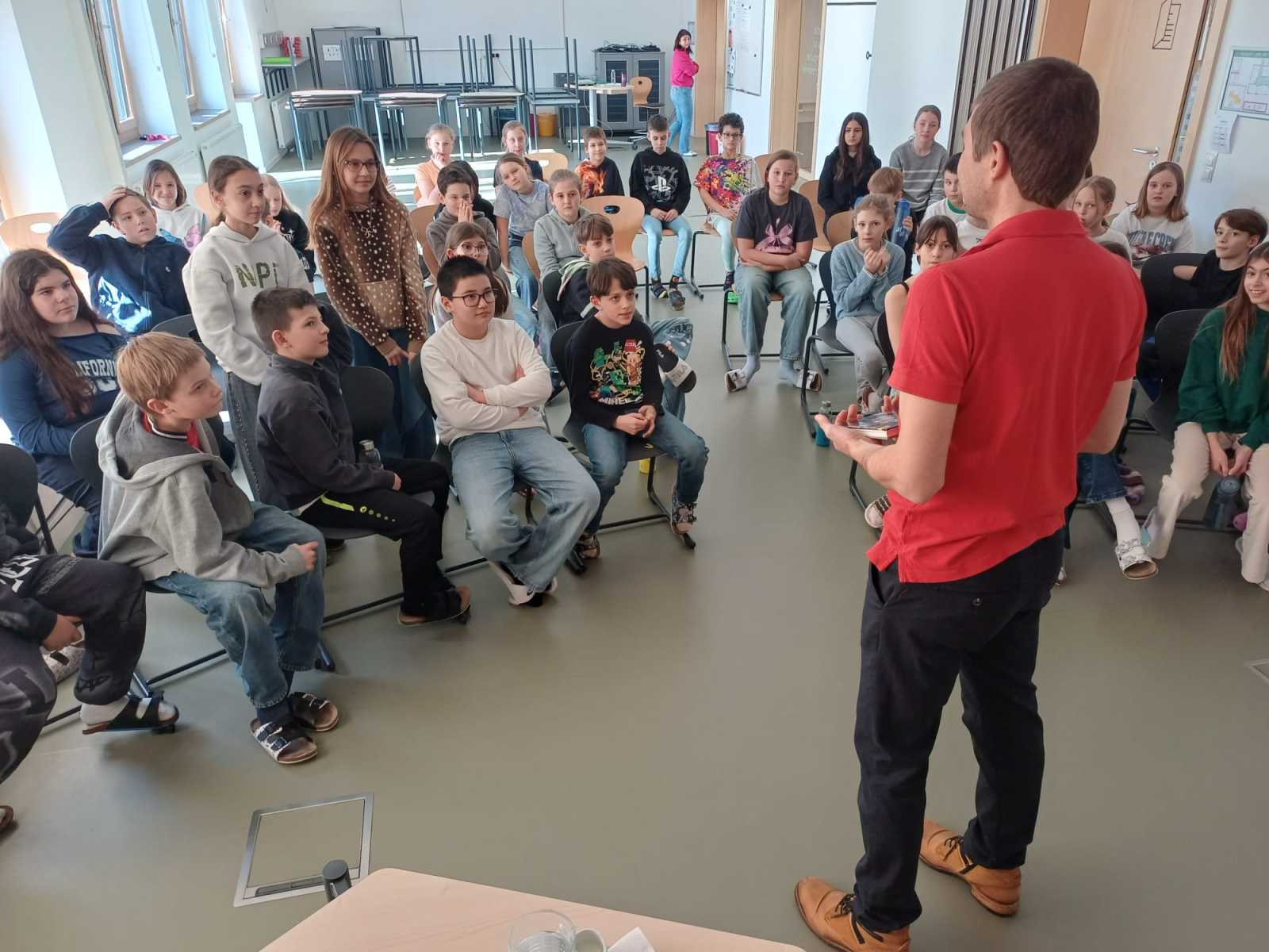 Der Autor Hannes Hörndler besuchte die ersten Klassen und stellte seine Kinder- und Jugendbücher vor. Mit viel Begeisterung und Humor bezog er die Schüler*innen aktiv in die Lesung ein und machte sie so zu einem besonderen Erlebnis.