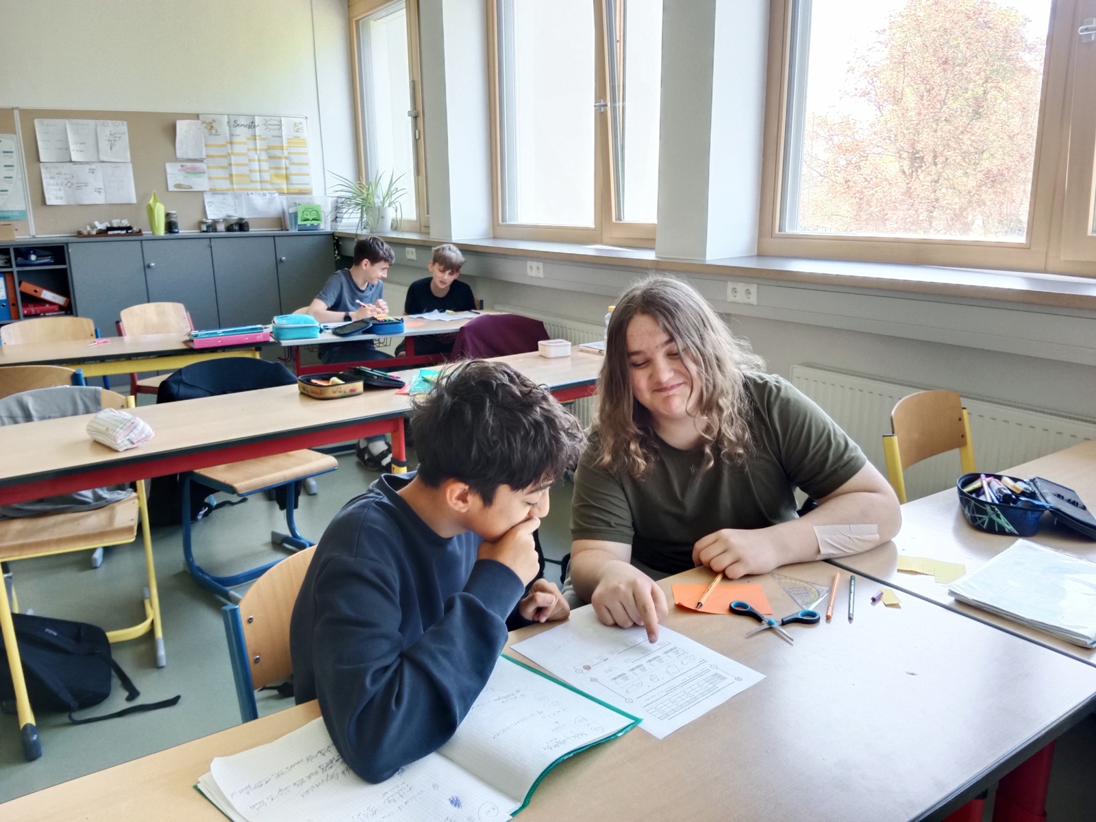 Am 24.04. stand im Mathematikunterricht der 2. und 3. Klassen das Thema Parallelogramm im Mittelpunkt, umgesetzt durch Peer-Learning. Dabei arbeiteten die Schüler*innen klassenübergreifend zusammen und lernten mit- und voneinander.