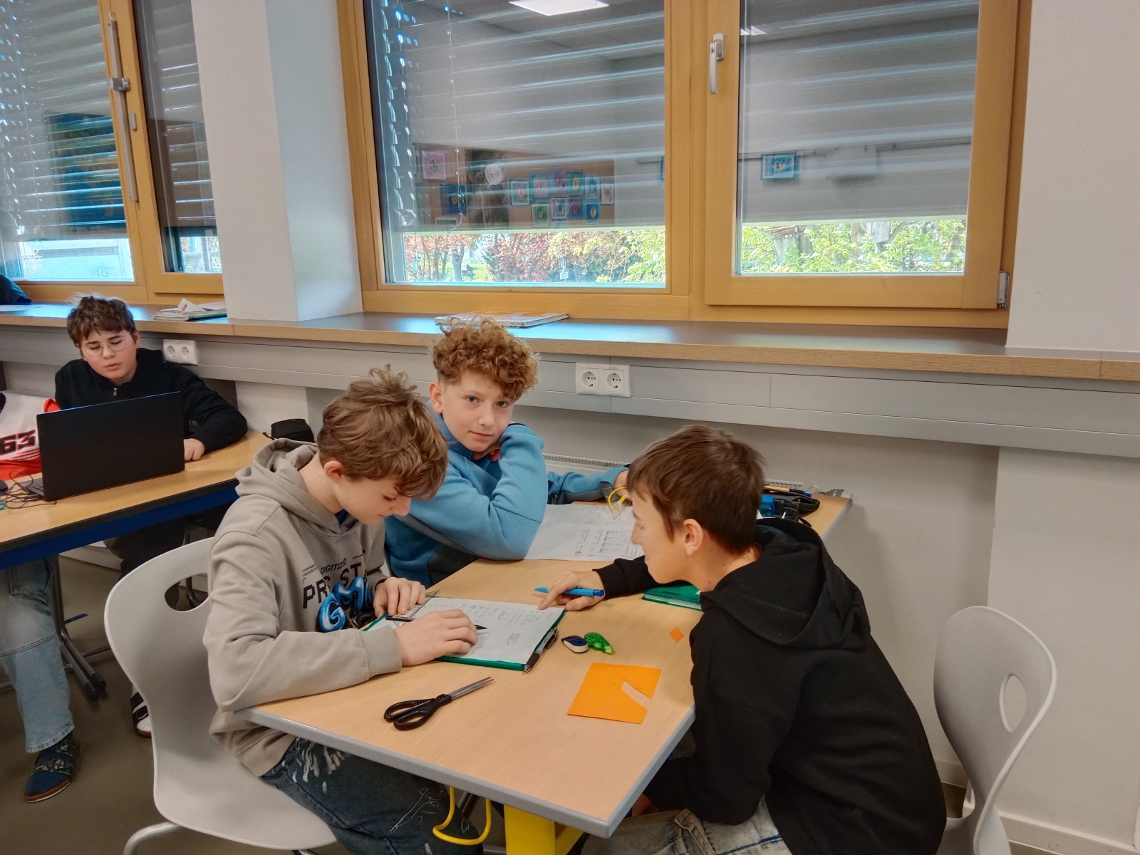 Die Kinder erklärten sich gegenseitig die Eigenschaften des Parallelogramms, zeichneten Figuren und verglichen ihre Ergebnisse. Durch den Austausch konnten sie ihr Verständnis vertiefen und voneinander profitieren.