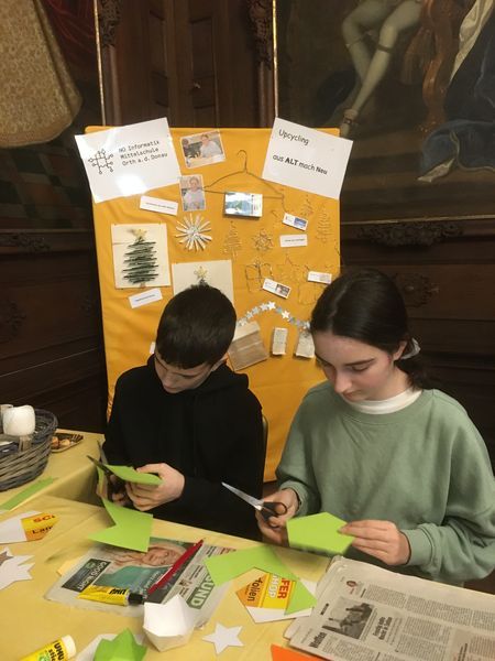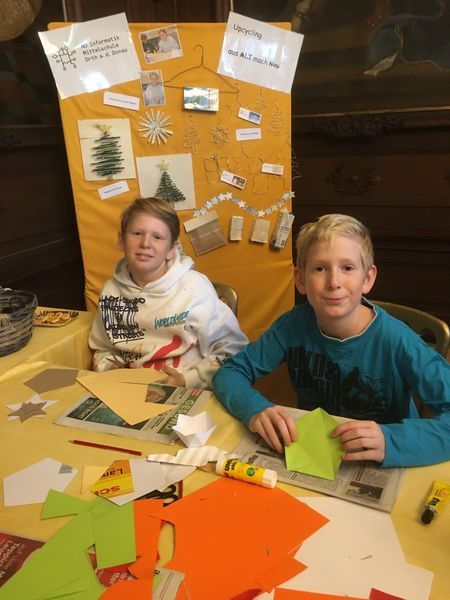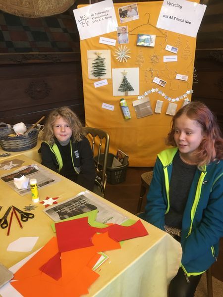 Anhand von verschiedenen Werkstücken sollten die Besucher angeregt werden, aus verschiedenen Abfallprodukten, Neues herzustellen. Auch die Kleinen wurden angeregt verschiedene Sterne zu produzieren, was aber nur durch die tolle Mithilfe unserer Schüler*innen gelang.