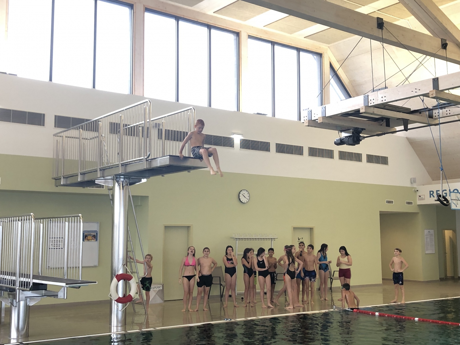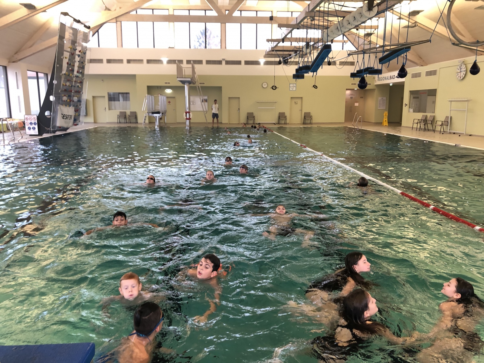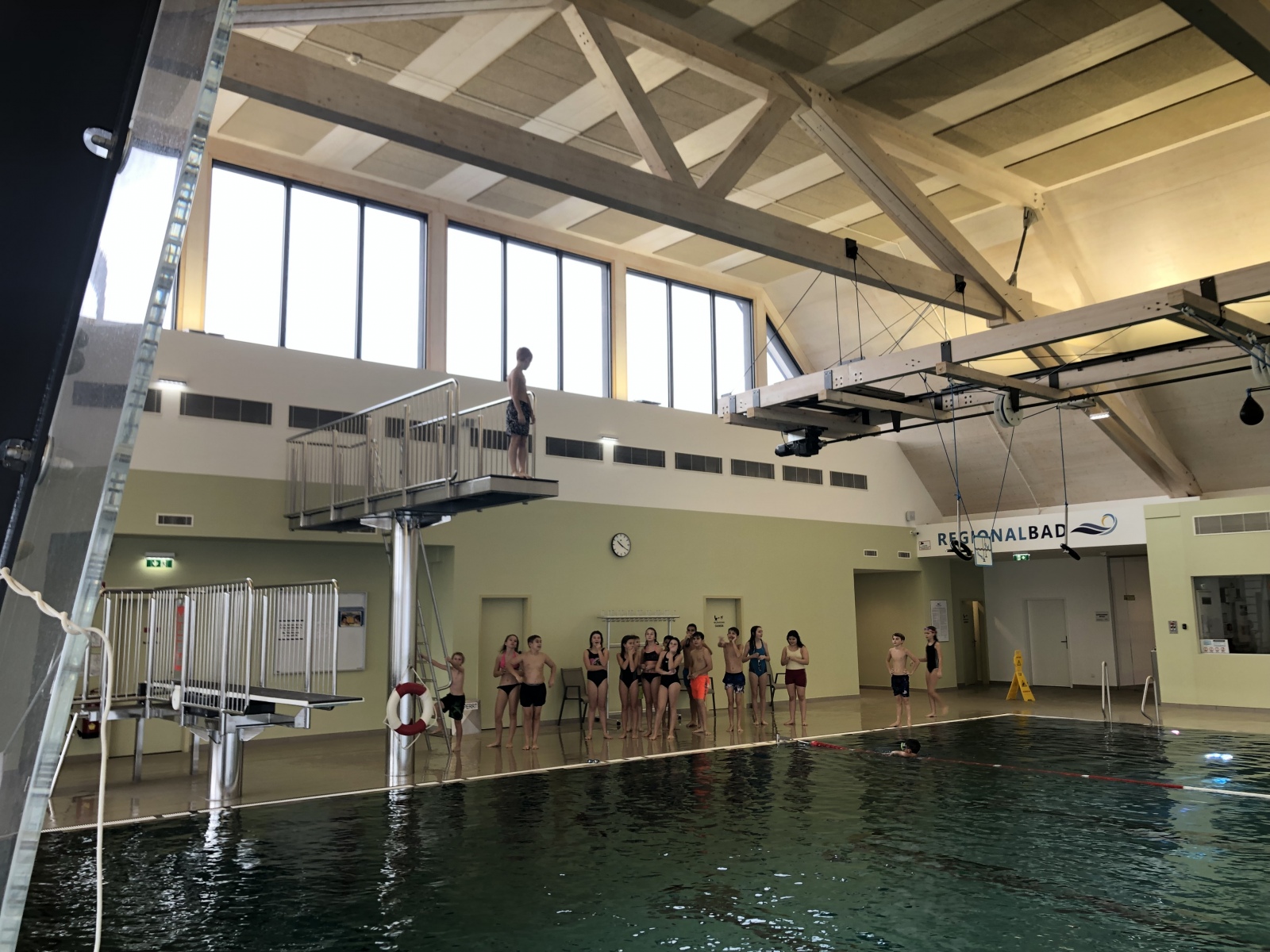 Am 29. November 2022 waren die Schüler*innen der 1a und 1b im Regionalbad Gänserndorf. Vorrangig ging es darum, noch einige ausstehende Kompetenzen für die Erlangung des Freischwimmer- oder Fahrtenschwimmerabzeichens zu beweisen. Das meiste war bereits auf der Schwimmwoche in Mariazell erledigt worden, manches konnte dort allerdings aufgrund zu geringer Beckentiefe und wegen dem fehlenden Sprungbrett nicht durchgeführt werden.