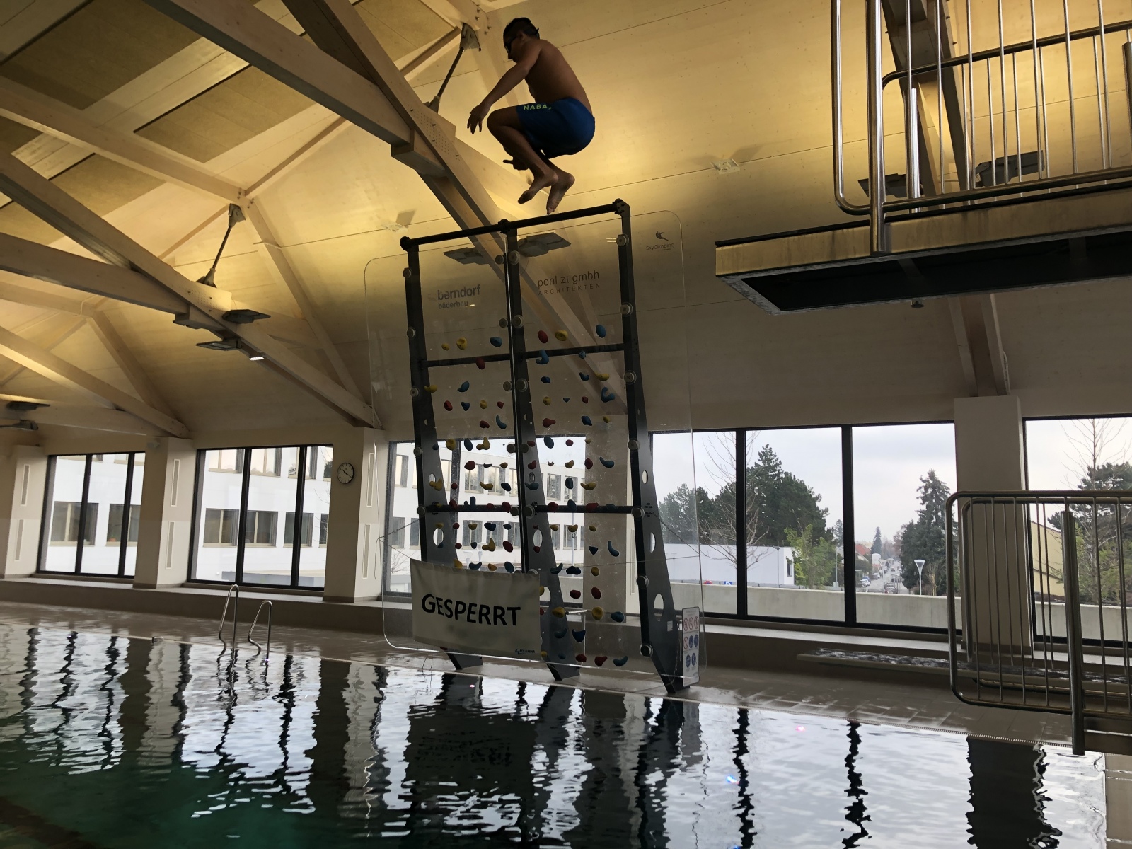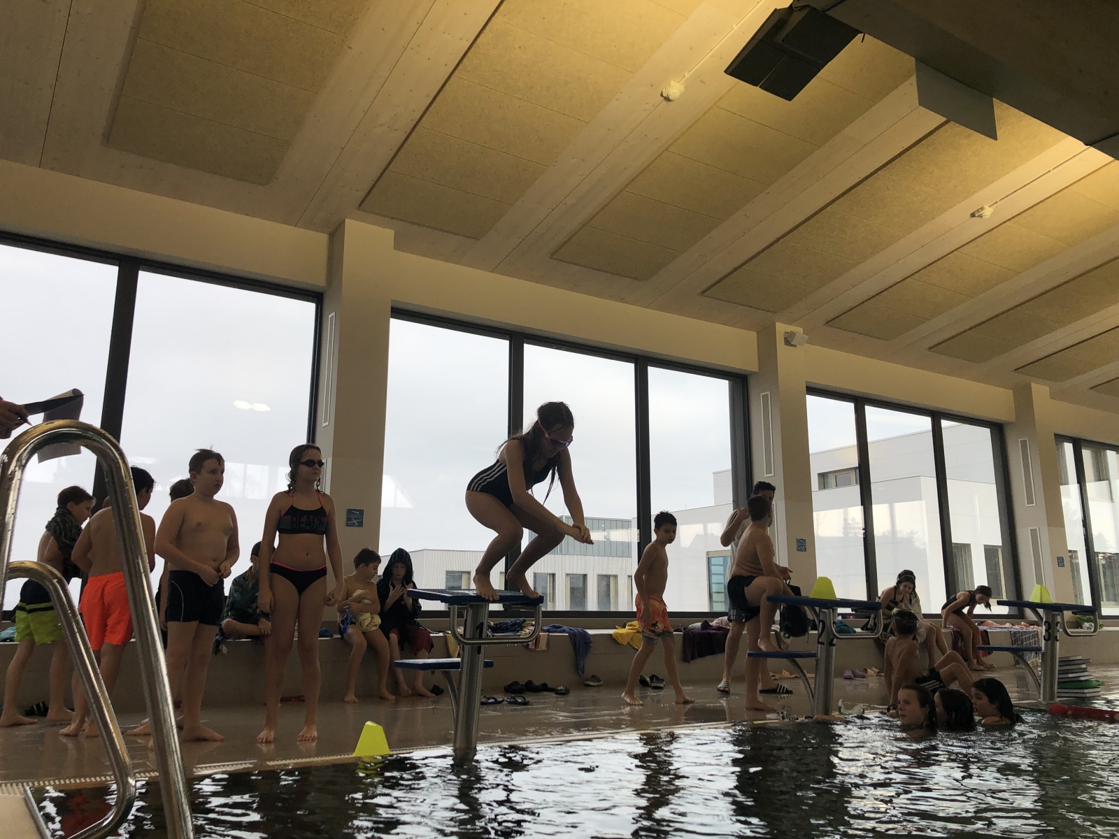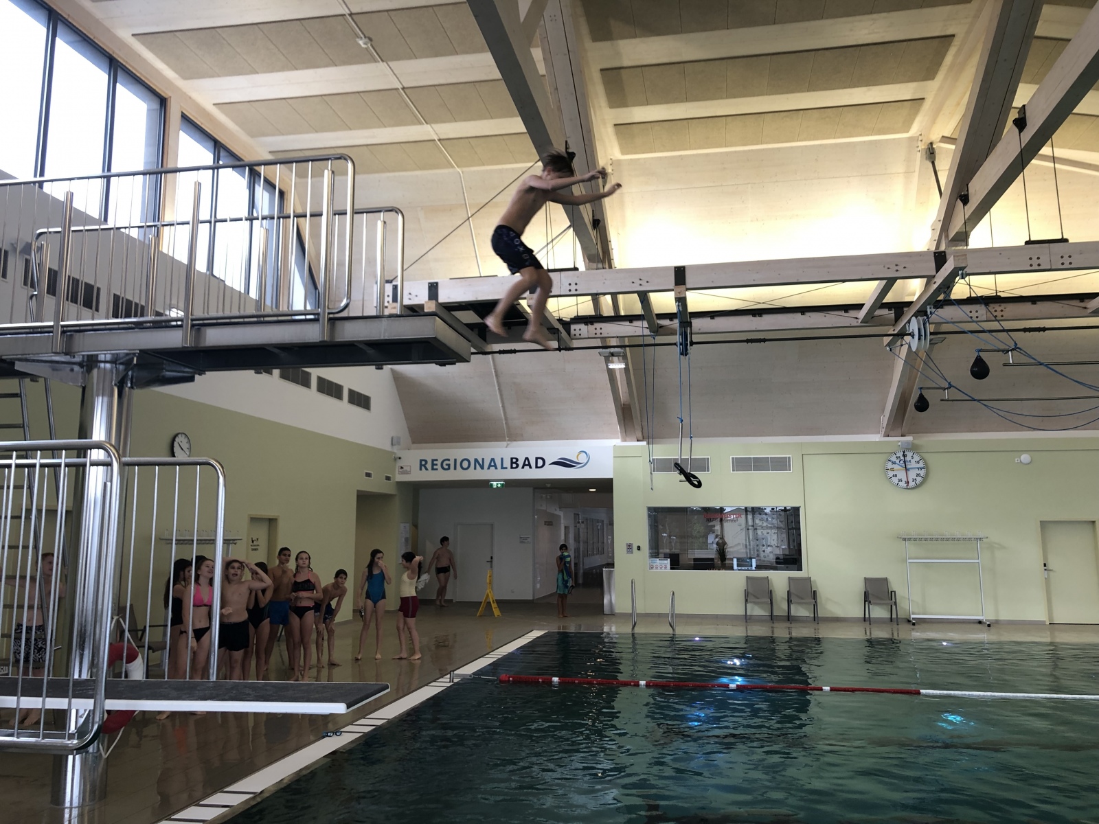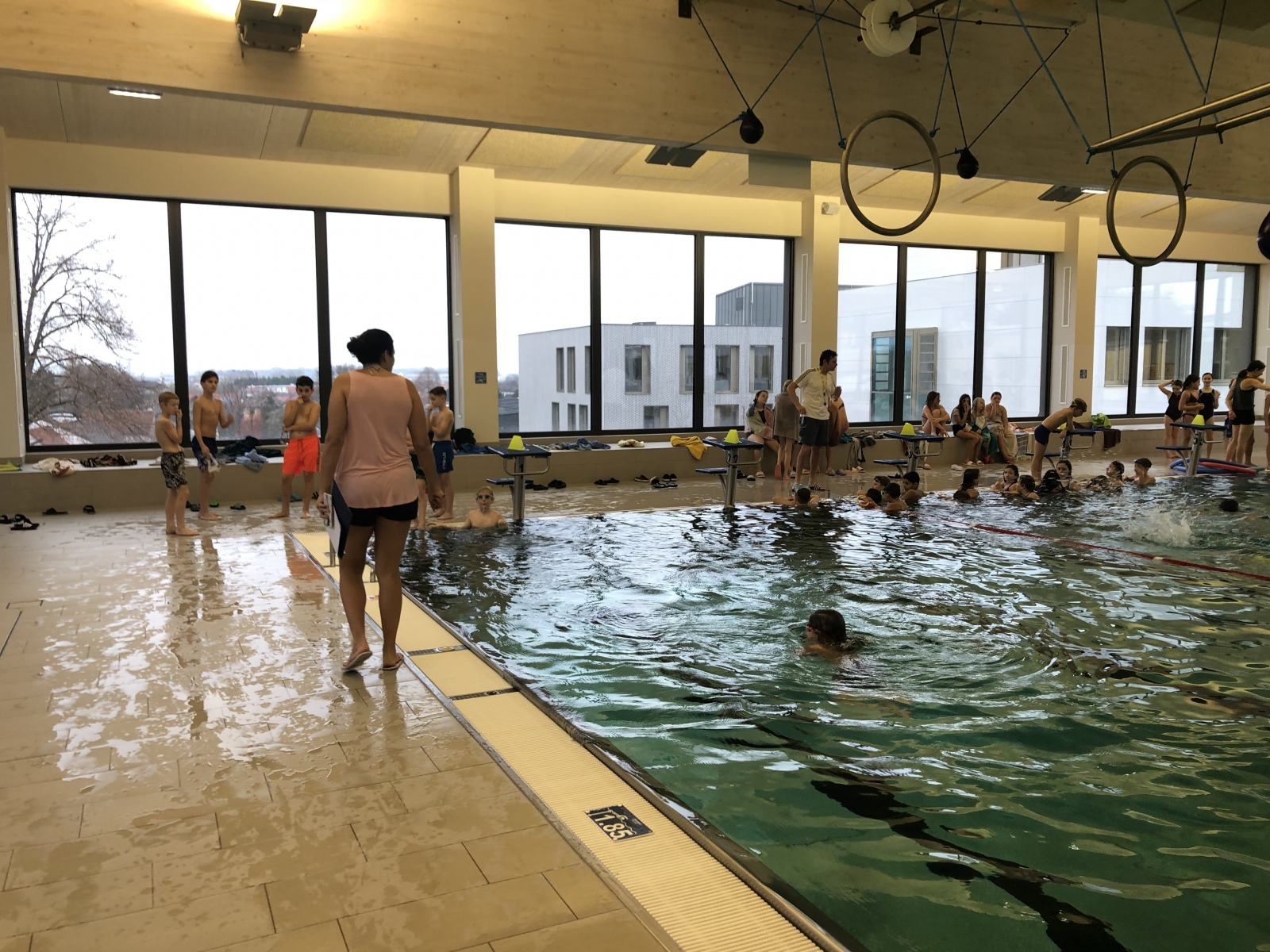 Am 29. November 2022 waren die Schüler*innen der 1a und 1b im Regionalbad Gänserndorf. Vorrangig ging es darum, noch einige ausstehende Kompetenzen für die Erlangung des Freischwimmer- oder Fahrtenschwimmerabzeichens zu beweisen. Das meiste war bereits auf der Schwimmwoche in Mariazell erledigt worden, manches konnte dort allerdings aufgrund zu geringer Beckentiefe und wegen dem fehlenden Sprungbrett nicht durchgeführt werden.