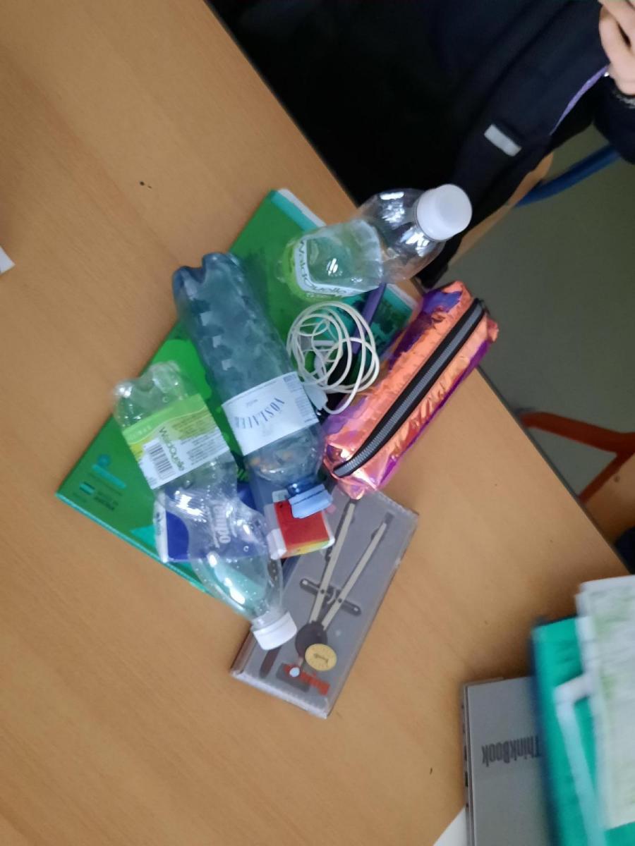 Wie viele Gegenstände aus Plastik befinden sich in meiner Schultasche?