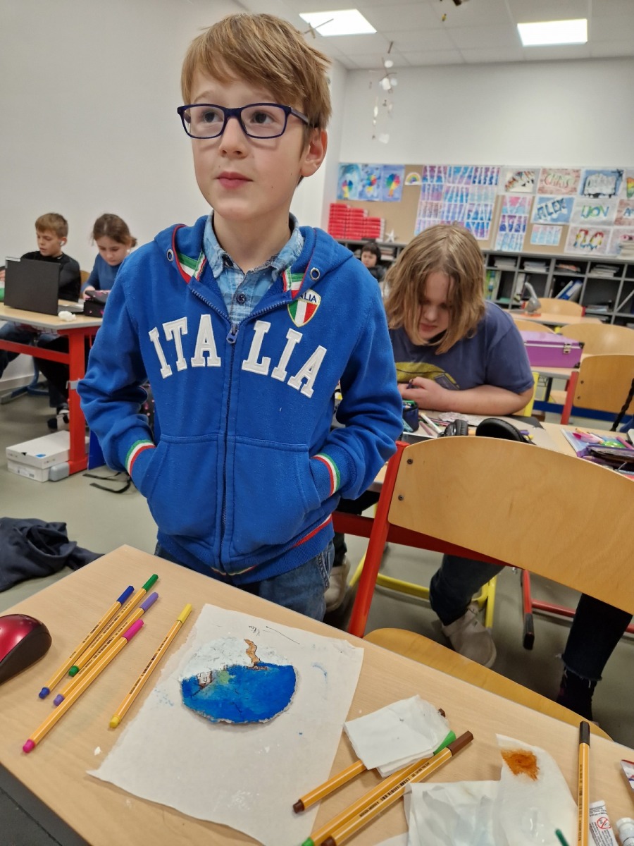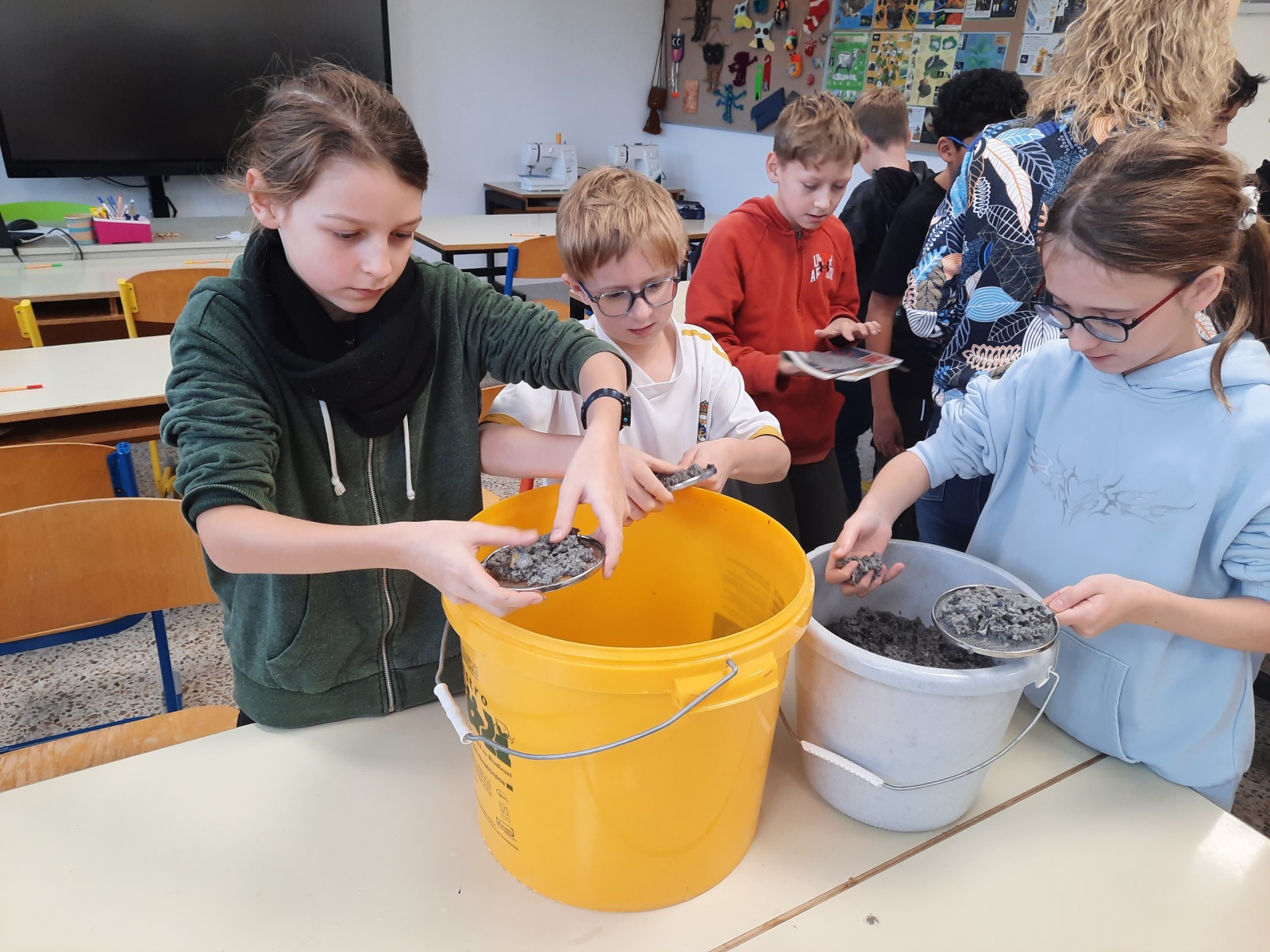 In einem Workshop des G.V.U. Gänserndorf erfuhren die ersten Klassen viel über die Geschichte, die Herstellung und das Recycling von Papier. Die Schüler*innen wussten selbst schon einiges und arbeiteten eifrig mit. Das Highlight des Workshops war, dass wir das Recyceln von Papier selbst ausprobieren durften! Matschige Pulpe aus eingeweichtem Zeitungspapier wurde auf einem Sieb vorsichtig ausgepresst und zum Trocknen abgelegt.