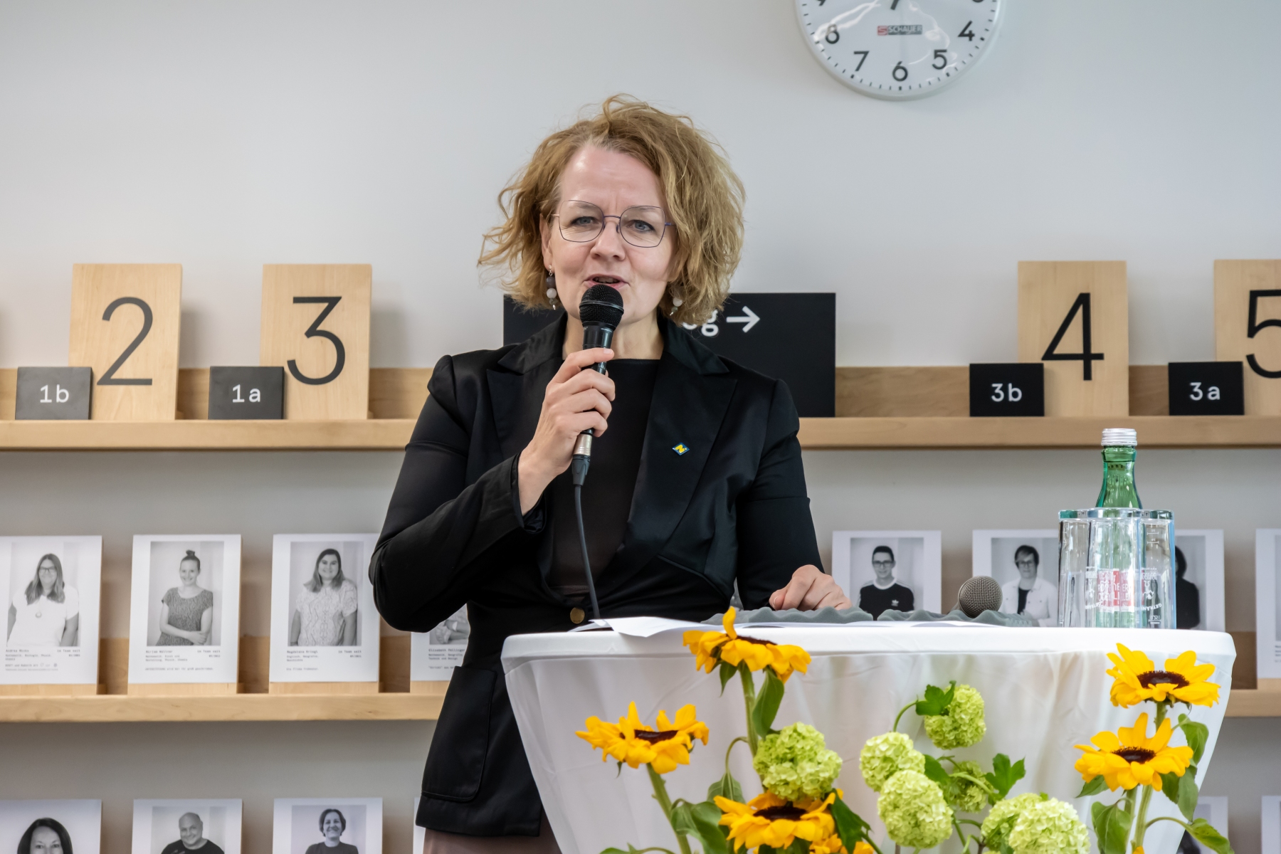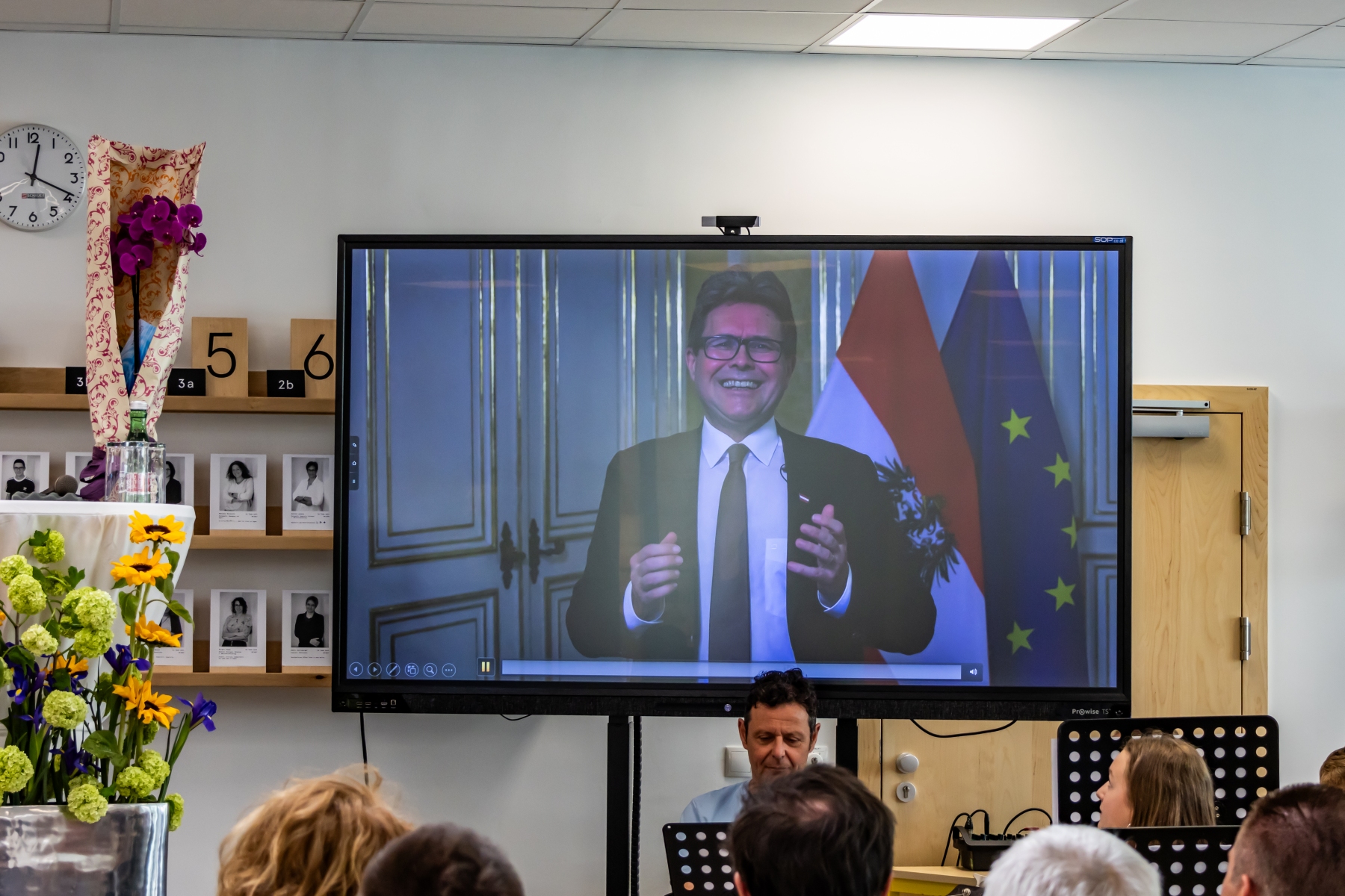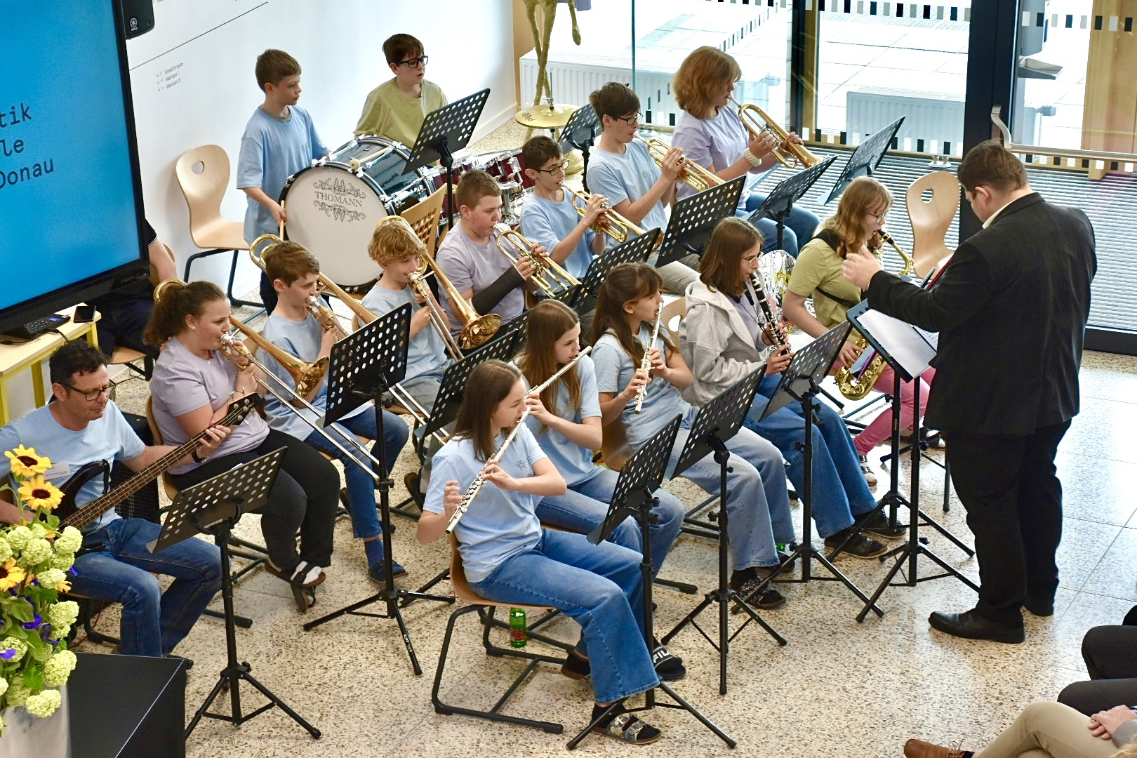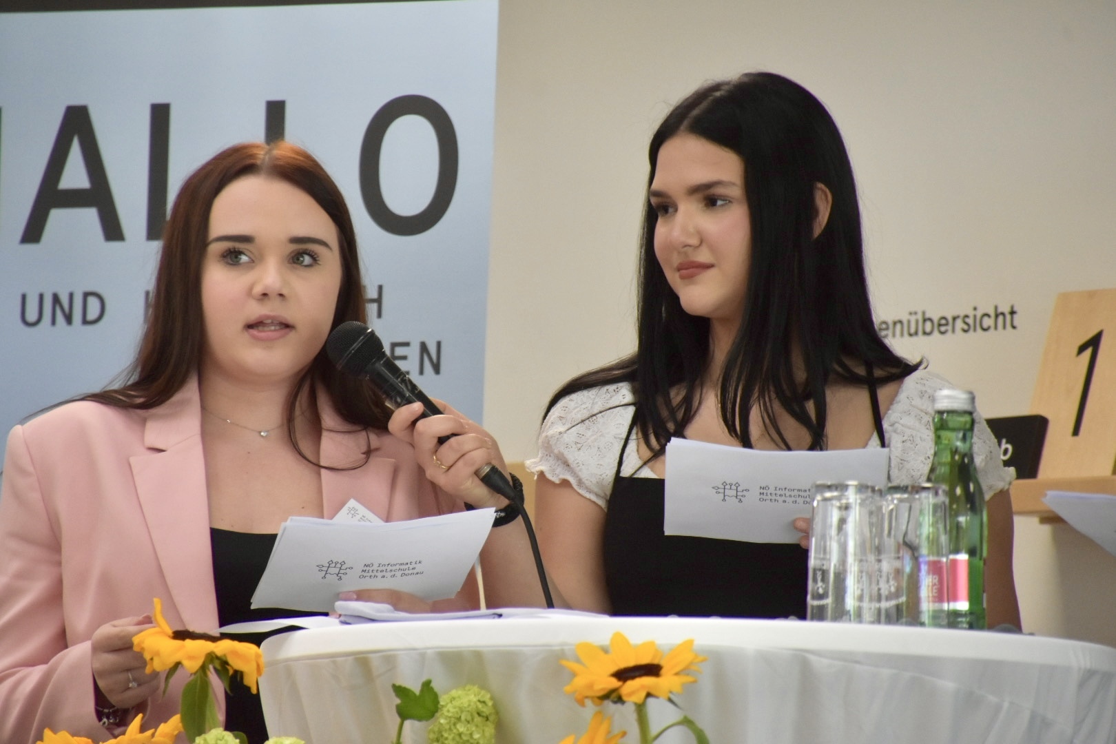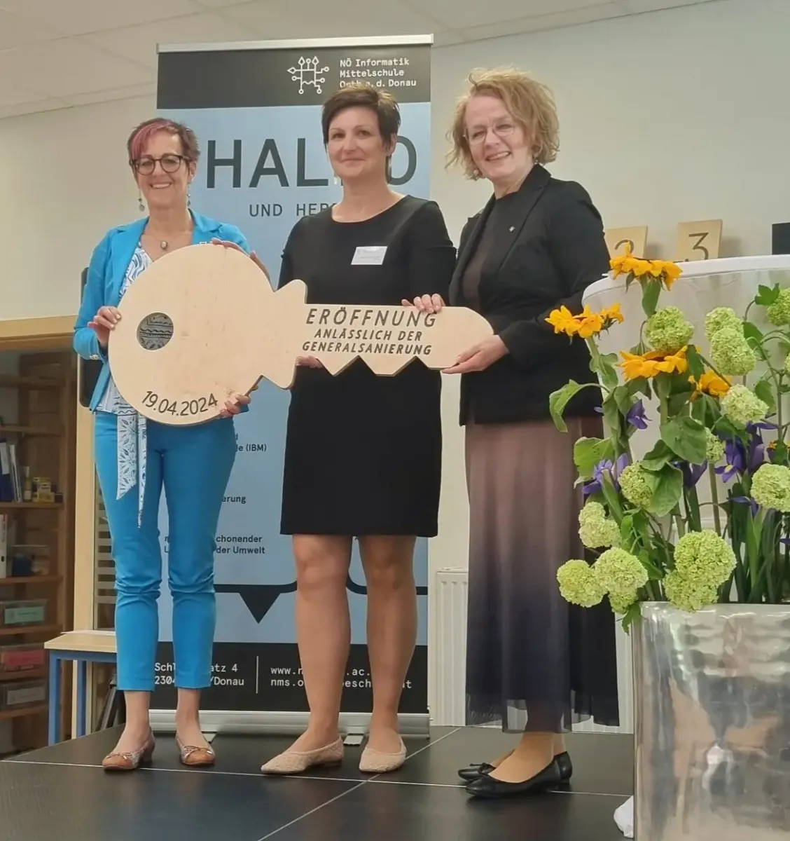 Im Rahmen der Eröffnungsfeier berichtetet die Obfrau der Mittelschulgemeinde, Bürgermeisterin Elisabeth Wagnes, vom Mut der Gemeinden zu diesem Millionenprojekt und bedankte sich für die gute Zusammenarbeit. Im Anschluss erfolgte anhand eines Interviews der Schulleiterin Ingrid Rohringer und den beiden Schulsprecherinnen Jana R. und Sofija B. eine Rückschau der mehrjährigen Baugeschichte. Ein Highlight der Feier war die virtuelle Grußbotschaft von Bildungsminister Matin Polaschek und die Festrede von Christiane Teschl-Hofmeister in Vertretung der Landeshauptfrau. Abschließend erfolgte die Segnung durch Pfarrer Erich Neidhart. Die Bläserklasse der IMS Orth/D. zeigte mit ihren Darbietungen ihr Können und sorgte für einen besonders feierlichen Rahmen der Eröffnungsfeier.