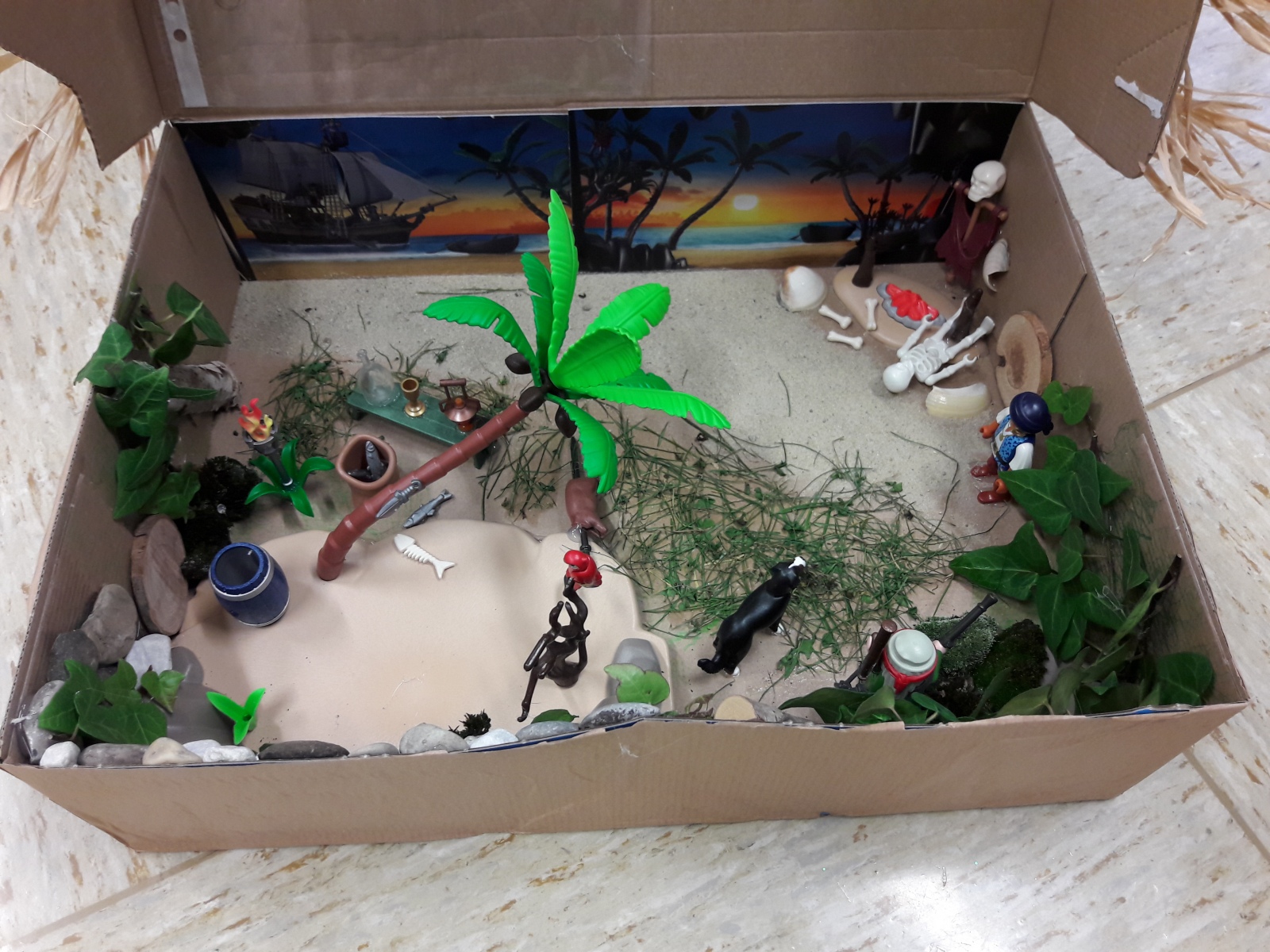 Inhalte eines Buches werden auf kreative Art und Weise veranschaulicht. Dazu wählen sich Schüler*innen bestimmte Szenen aus und stellen diese in einer Schachtel nach.